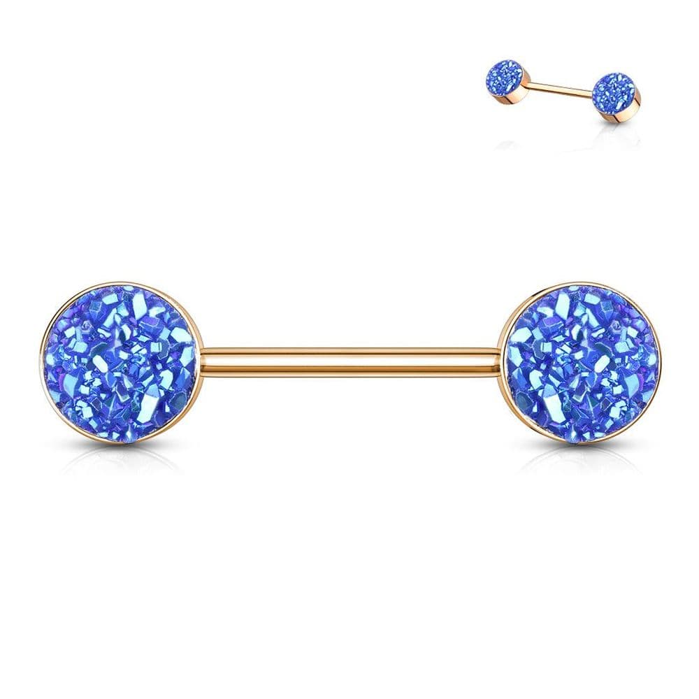 Druzy Stone Set Ends Nipple Bar {Rose Gold + Blue} - Rose Gold w/ Blue is backordered and will ship as soon as it is back in stock.