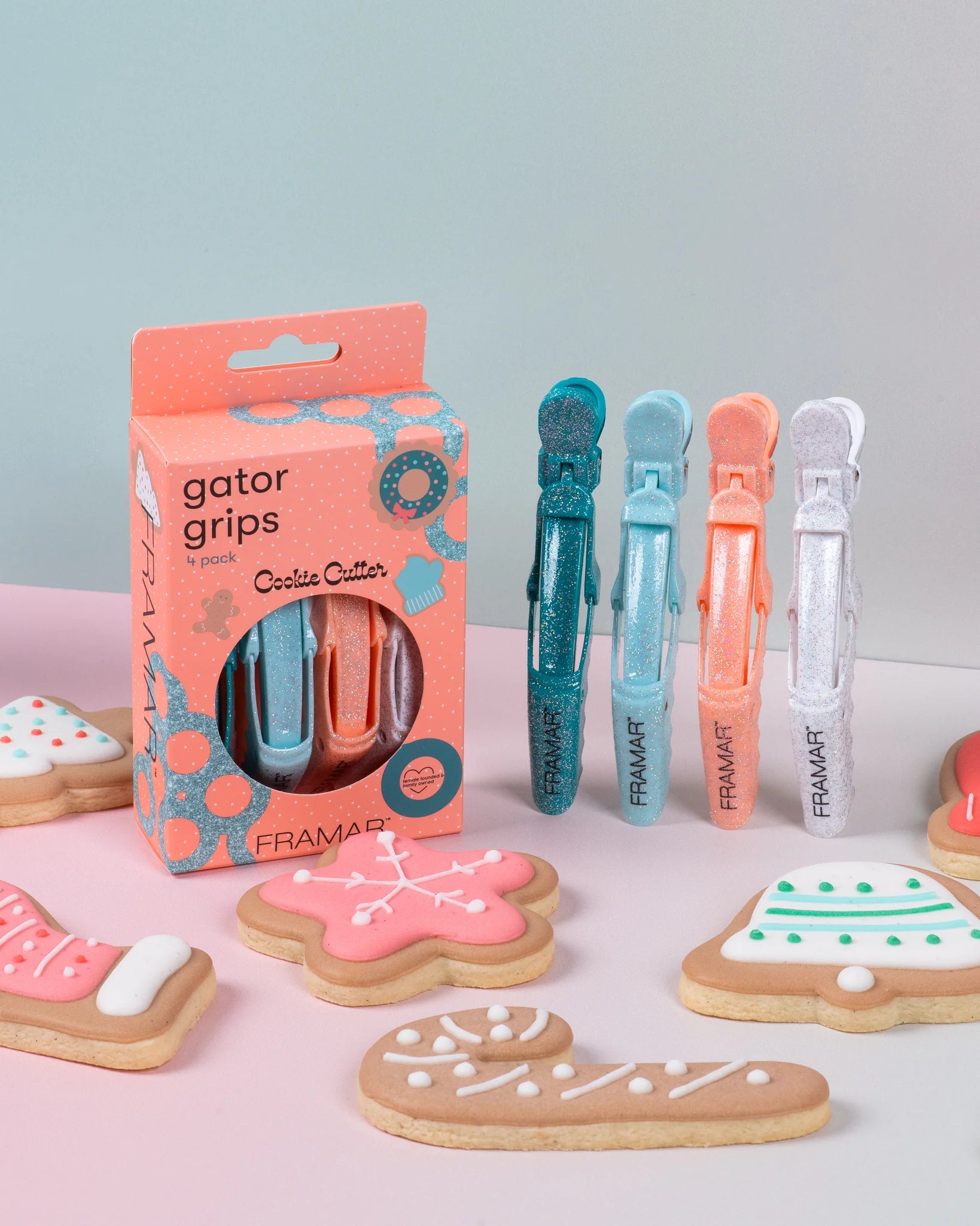 Framar Cookie Cutter Glitter Gator Grip Hair Clips 4pcs